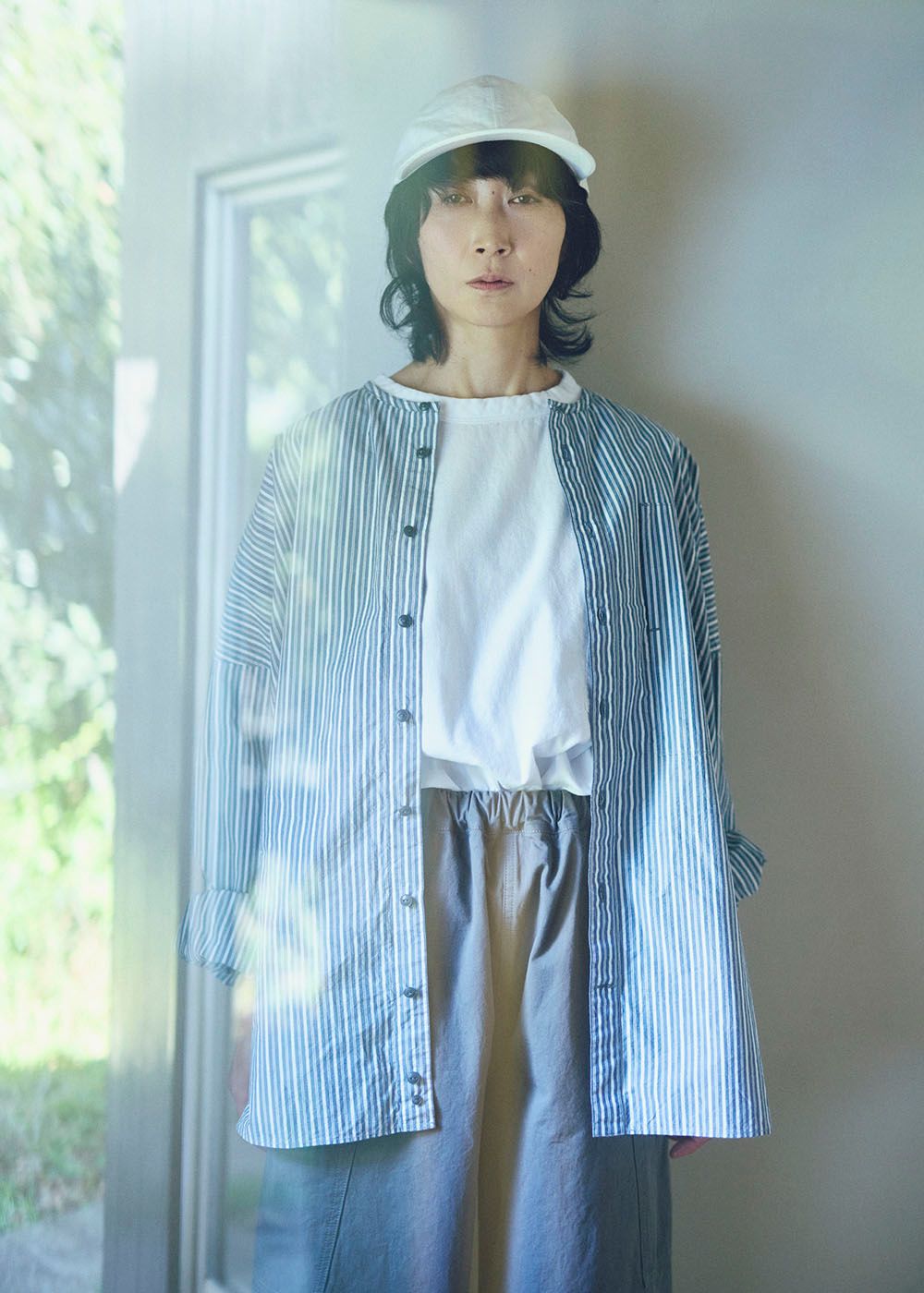 着るほどに風合いを増す古道具感とタフさ、背筋が伸びるような美しさが共存する、日常の道具のような服たちが並びます。